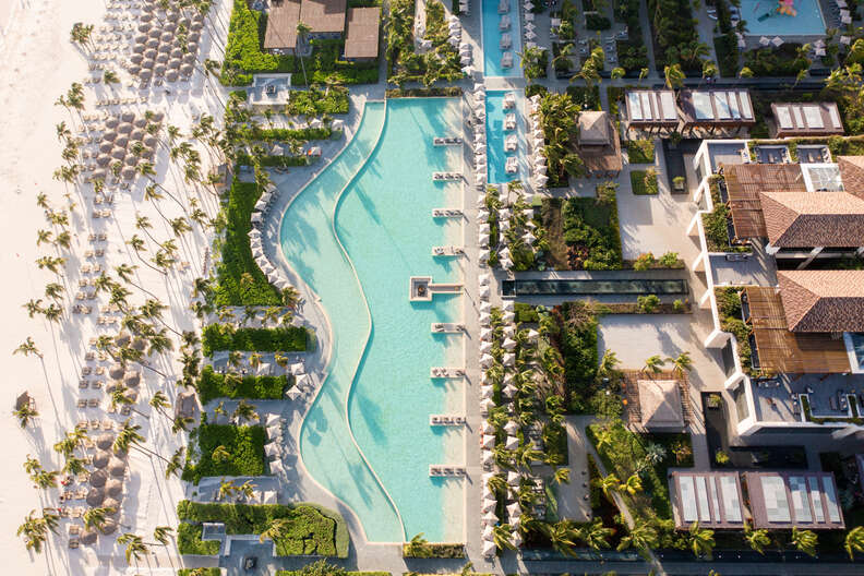 Although the resort isn’t exclusively for adults, there are adult-only offerings on the same premises: if you book an adults-only room, you’ll stay in a separate area of the hotel with a pool and bar, as well as have access to a private beach area and a Caribbean buffet.