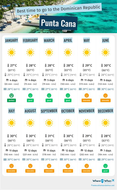 Web — Punta Cana, Dominican Republic has a tropical monsoon climate with high temperatures and abundant rainfall throughout the year. January is the highest average value. January in the Dominican Republic is on average a warm to hot month, with lows of 18.6 degrees Celsius (65 degrees Fahrenheit) and highs of 18.6 degrees Celsius (65 degrees Fahrenheit).
